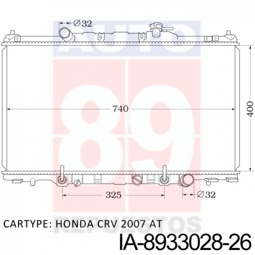 RADIADOR HONDA CRV K20Z 2.0 RE4 ATM MTM 2005- 2007- 19010-PNL-G01 19010-PPA-A51 19010-RZA-A01 IA-8933028-26 33028-26 400X728X26 17093