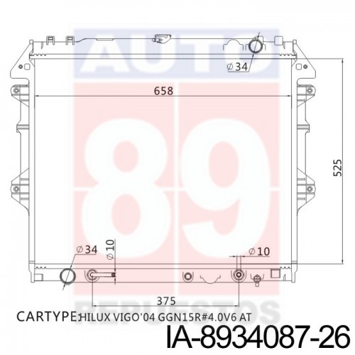 RADIADOR TOYOTA FORTUNER GGN50L GGN60L 1GRFE ATM 2006-2011 HILUX VIGO GGN25L IGRFE ATM 2012- 16400-0P040 16400-0P060 34087-26 525X658X26
