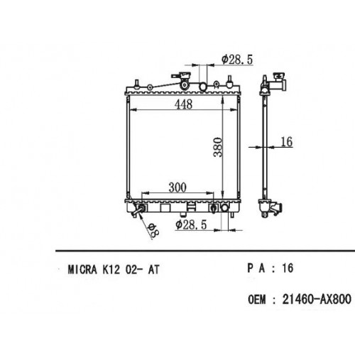 RADIADOR NISSAN TIIDA 2007- MICRA K12 NOTE ATM 2002- 21460-AX800 21460-BH50A 15056A 380X438X16