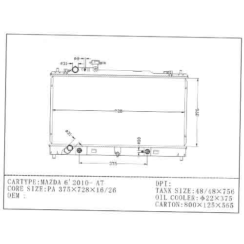 RADIADOR MAZDA 6 1.8 2.0 ATM 2007-2013 LFY1-15-SB0 375X728X26 16119