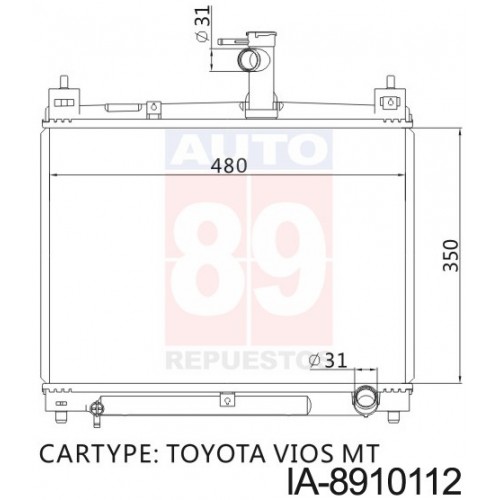 RADIADOR TOYOTA YARIS VIOS 5CC MT 16400-0M030 IA-8910112 IA-8934120-16 350*488*16